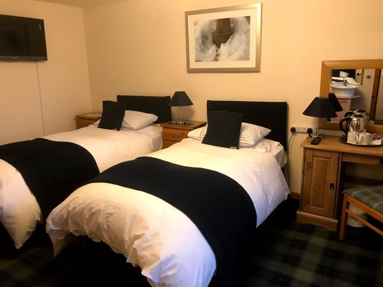 A charming bed and breakfast with sea views, Hal O The Wynd in Sternoway is an excellent base for exploring the Outer Hebrides. The town centre is less than 10 minutes’ walk away, and you can stroll to the quay or visit the museum and nearby shops and restaurants. The Digby chick is well worth a visit but booking is essential. Raon Goilf Golf Course is 2 miles from the building. Rooms at Hal O’ The Wynd are traditionally furnished, with satellite TV and tea and coffee making facilities. As well as views of the sea, they look out over Lews Castle grounds and beyond to Arnish point. A full cooked breakfast is provided each morning, served in the charming dining room. In order to book please click on the website link to check availability and book on line