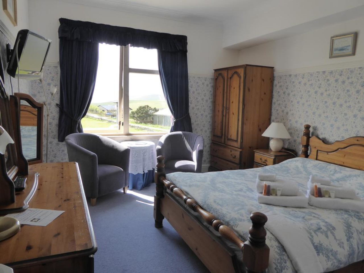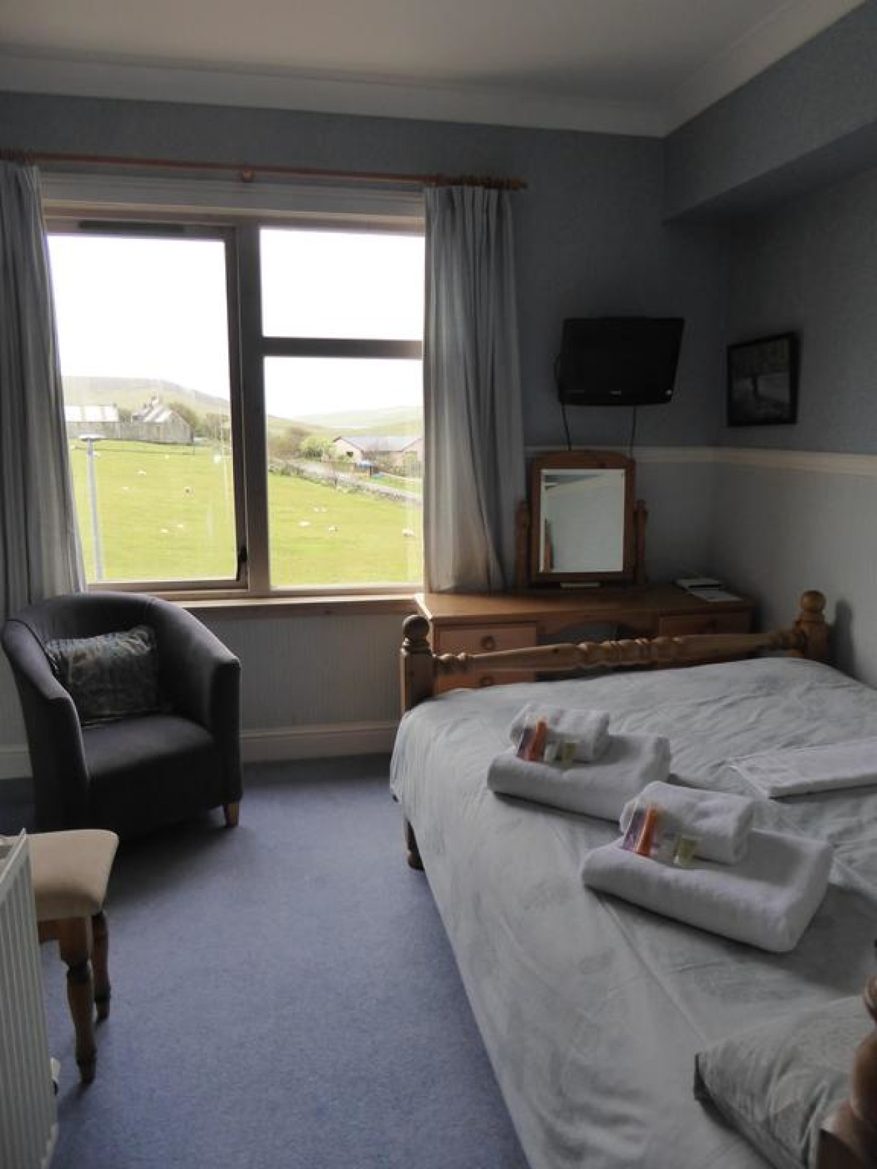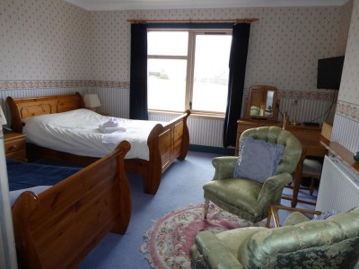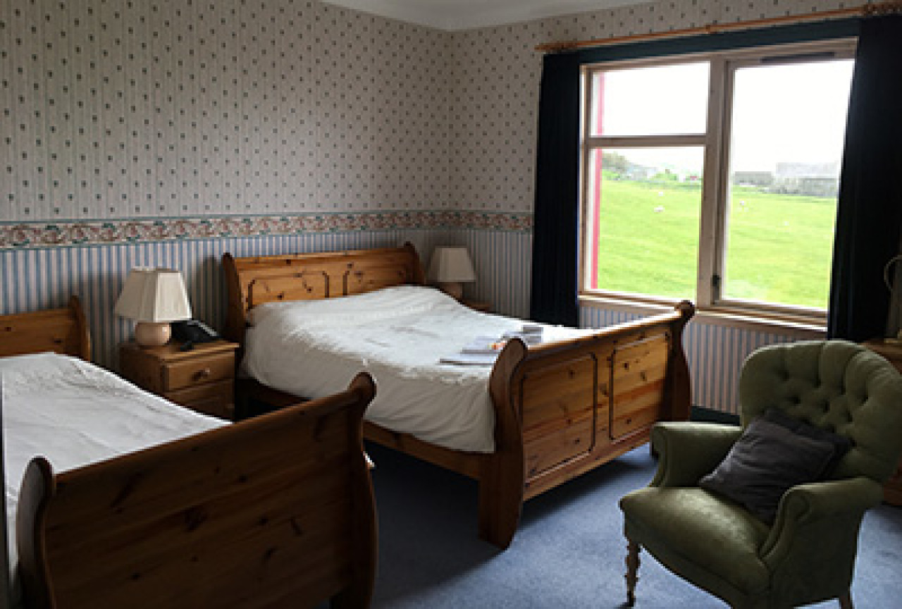 Herrislea House Hotel is only seven miles drive from the capital town Lerwick and the ancient capital of Scalloway. Situated in the hamlet of Veensgarth at the north end of the Tingwall valley and lochs. We are in Central Shetland in a ideal position for travelling to all parts in a day with a quick take off avoiding town traffic. We offer a relaxed and friendly atmosphere in a pleasant, mainly agricultural area. The proprietors ensure a very warm welcome and a flexible approach for guests, from late check-ins, to all-day access, early breakfasts & tailored dinners. We have 9 individually designed en suite rooms, each one with its own décor. All rooms are non-smoking, each has good wifi access and a mini bar with the usual TV, coffee/tea, telephone. With hair dryers & irons available. Facilities includes plenty free parking. We are fully licensed and have a comfortable Front Room lounge where you can enjoy comfy pre dinner drinks or have a daytime meeting. We have a small restaurant where we aim to offer complete home comfort. You can dine with us to experience quality local produce to suit all tastes from local lemon butter halibut & rib eye steaks to our handmade pizzas & local burgers