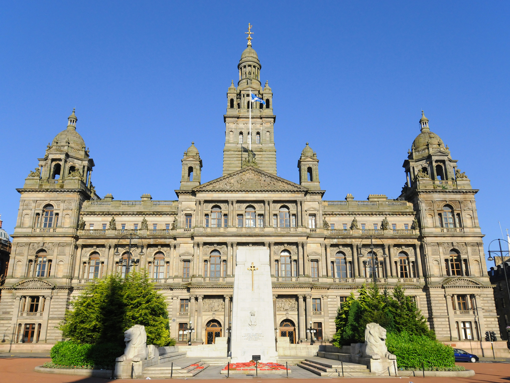 Completed in 1888, Glasgow City Chambers has been a symbol of the cities wealth and industrial power for over 100 years. Located on George Square right in the heart of Glasgow, the City Chambers is home to Glasgow council and is renowned for being one of the premier civic buildings in the United Kingdom. The building's facade houses an image of Queen Victoria, and the Statue of Truth is located above her. The building is an excellent example of Victorian Architecture and gives a reminder of Glasgow's past industrial might.