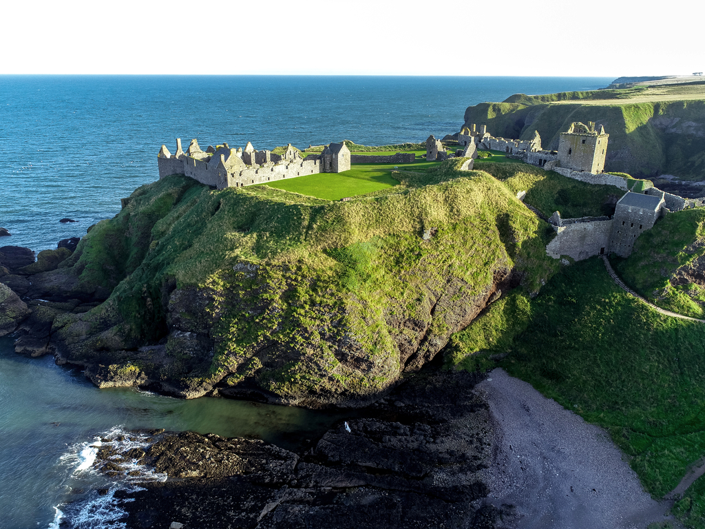 Dunnottar Castle played an essential role in Scottish history from the Middle Ages through to the Enlightenment because of its strategic position on a narrow coastal terrace, overlooking the shipping lanes to the north of Scotland on the one hand and being able to control land movements on the other. The castle is a top-rated attraction in Scotland and is visited thousands of times a year by tourists.
