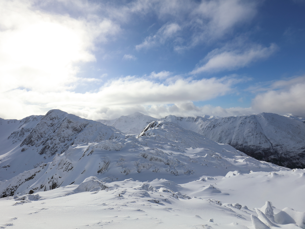 The sharp peaks of the Five Sisters rule the skyline, while one of Scotland's highest waterfalls, the breathtaking Glomach Falls, is nestled in a cleft in the valleys.